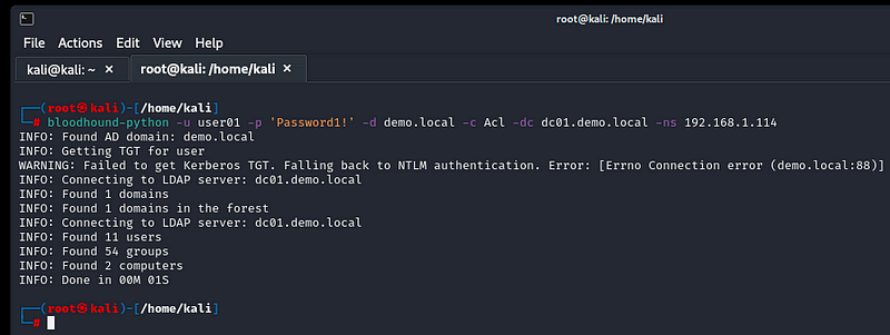 bloodhound-python -u user01 -p Password1! -d demo.local -c Acl -dc dc01.demo.local -ns 192.168.1.114