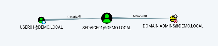 GenericAll implies we have full rights over the demo\service01 user object, which also happens to be a member of the privileged demo\Domain Admins group 😈.