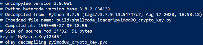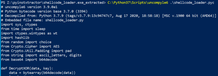 However, it was still possible to convert the shellcode_loader.pyc file back to its original source — without any decryption methods applied: